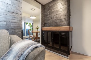 The condo features two tandem parking spaces, two balconies, and a decommissioned fireplace maintained as a striking decorative centerpiece. The property is surrounded by beautifully landscaped grounds and offers visitor parking.