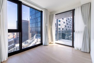 Elegant 2-bedroom condo on the 28th floor of the prestigious Maestria project in Montreal's vibrant Quartier des Spectacles. Enjoy stunning panoramic city views from this landmark residence steps from Place des Arts, restaurants, shops, schools, supermarkets, and metro stations. Premium amenities include indoor and outdoor pools, gym, cinema room, golf simulator, and the signature Sky-Bridge walkway, offering refined urban living in the heart of downtown Montreal.