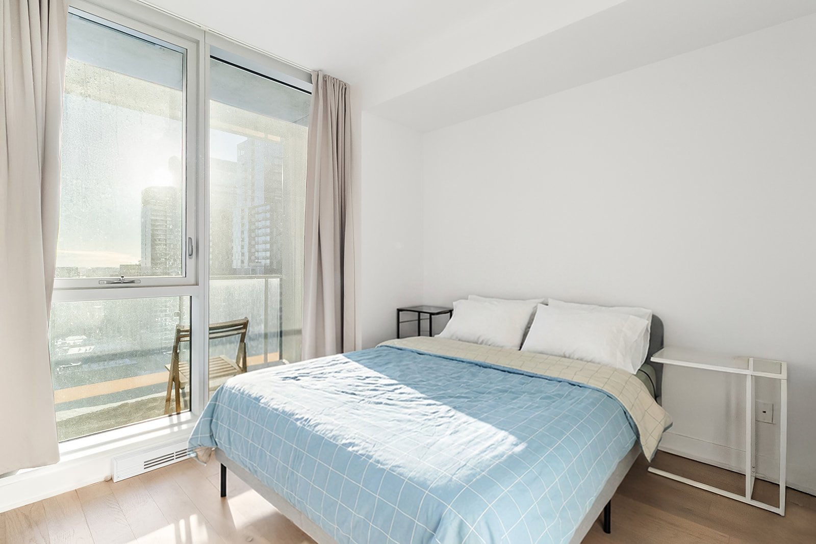 Bright and beautiful condo for sale in the heart of downtown! Located at 1020 de la Montagne Street, Unit 2508, this condo offers one spacious bedroom, a full bathroom with separate washer and dryer, and a functional kitchen. The main living area, including the living room and dining area, is filled with natural light thanks to large windows with stunning city views. Enjoy access to common areas such as a swimming pool and a fitness room. Ideally located near schools, shops, services, and public transportation. A visit is a must!