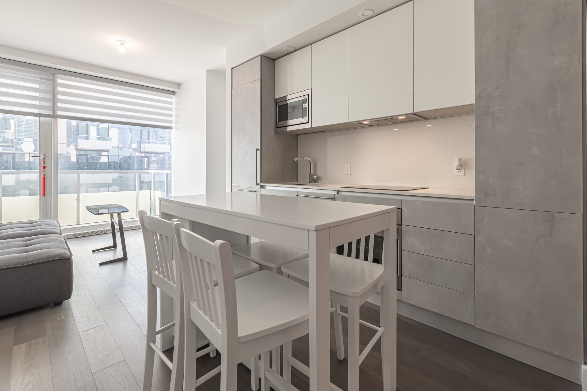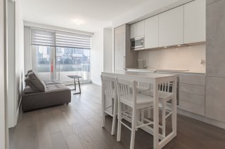 Superbm furnished condo in the heart of downtown Montreal! This unit offers you 1 large bedroom with walk-in closet, a modern living space, lots of light and is located near all amenities and services. Perfect location, near all the services and publish transportation. Common space include swimming pool, sky-lounge,sauna and gym. A must see!