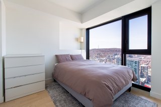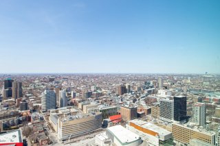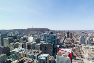 Welcome to Maestria, in the heart of Quartier des Spectacles. This exceptional 48th-floor 1-bedroom offers breathtaking "unobstructed views" of the city, Mount Royal, and stunning SUNSETs, with floor-to-ceiling windows flooding the space with natural light. One of the largest 1-bedroom layouts in the building, it combines functionality with modern elegance. Steps from Place des Arts, McGill, UQAM, Concordia, metro, dining, and nightlife. Enjoy luxury amenities including pools, gym, cinema, golf simulator, and the iconic skybridge.