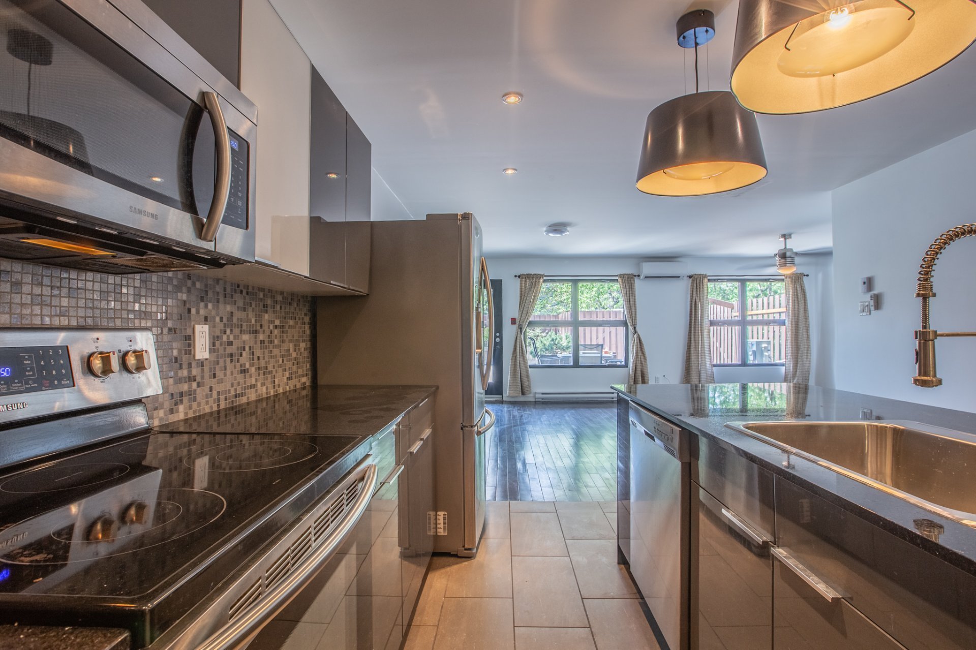 Inclusions : stove, washer, dryer, refrigerator, dishwasher, microwave, wall-mounted AC, curtains, light fixtures