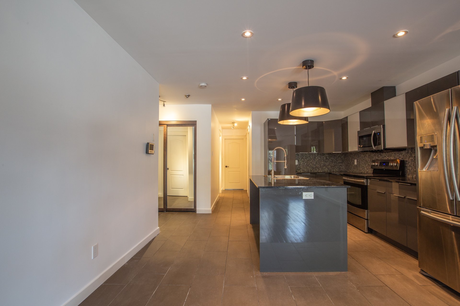 LOCATION! LOCATION! LOCATION! Less than 2 minutes walk from the metro Lionel-Groulx, this modern 2bedroom and 2bathroom condo with outdoor parking. Completely renovated with hardwood floors, modern kitchen with quartz countertop, spacious bathrooms, open concept living areas and access to a common and spacious back terrace Minutes from: Lionel-Groulx bus & metro station Atwater Market Grocery stores & SAQ Bike path along the canal Notre-Dame and Saint-Henri shops, boutiques and restaurants Down the hill from Alexis-Nihon mall and Westmount